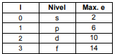 Se concluye que en un estado “s” puede haber como máximo dos electrones, seis en uno “p”, diez en un “d” y catorce en un “f”