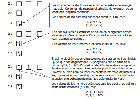 A la hora de ir llenando con electrones los distintos estados de energía disponibles hay que tener en cuenta el llamado Principio de Exclusión de Pauli: