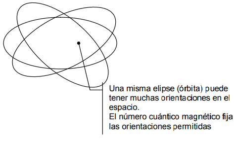 Si consideramos un espacio tridimensional, vemos que las elipses (órbitas electrónicas) pueden adquirir diversas orientaciones.
