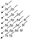 - Los electrones se van distribuyendo entre los estados de energía posibles llenando primero los de menor energía. Cuando un nivel se complete, pasar al siguiente (recordar el principio de exclusión y para establecer el orden de llenado usar el diagrama de Möeller).