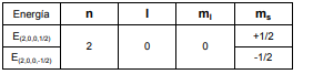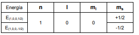 cuánticos: tres que fijan el valor de la energía de la órbita considerada: n, l y ml, y el número cuántico de spin, ms, que cuantiza la energía propia del electrón: